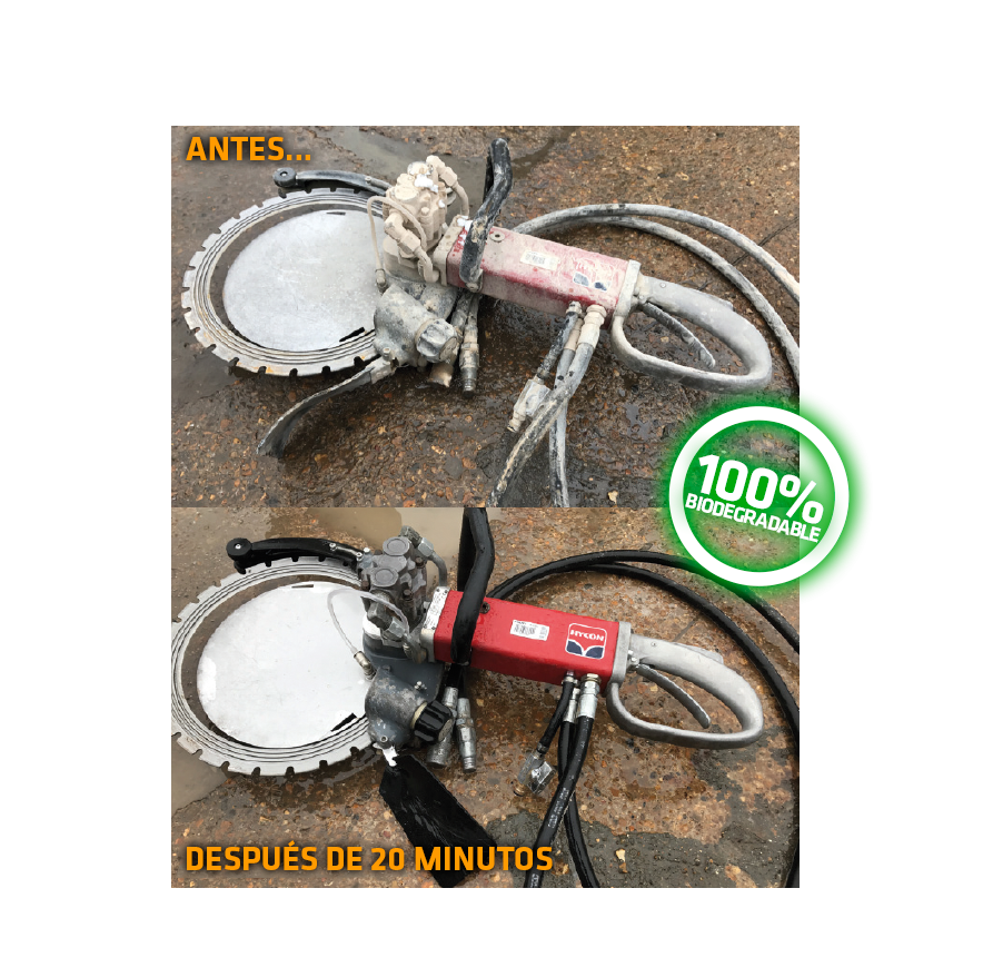 Listo para usar, CreteBeater es 100% biodegradable y está diseñado para eliminar de forma segura el cemento y el hormigón por medio de solventes ecológicos.